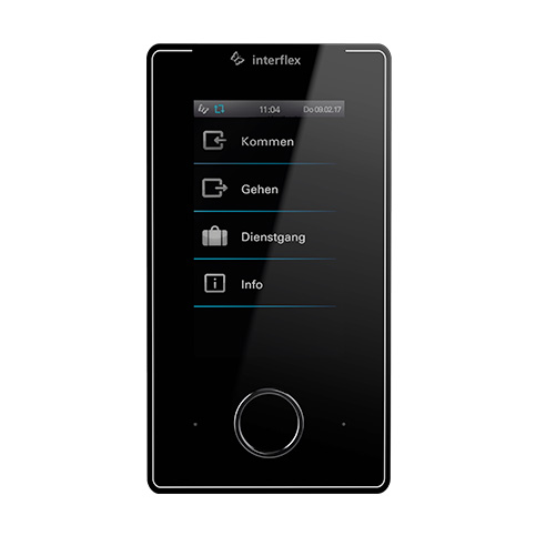 Die Terminals für Zeiterfassung der Serie IF-5735 sind benutzerfreundliche Lesegeräte zur berührungslosen Identifizierung mit RFID-Identifikationsmedien, beispielsweise Ausweise und Schlüsselanhänger mit Transponder. Die Terminals der Serie IF-5735 werden mit dem System IF-6040 betrieben und lassen sich für die Zeiterfassung einsetzen, optional auch für die Kostenstellen- und Barcode-Erfassung. Um ihre Zeiten zu erfassen, können Mitarbeiterinnen und Mitarbeiter per Bluetooth® Low Energy ihr Smartphone am Terminal präsentieren oder sich mit RFID-Identifikationsmedien berührungslos per Ausweis identifizieren. Das Terminal ist mit einem Näherungssensor ausgestattet. Wird es nicht benötigt, schaltet es auf den Energiesparmodus. Der Datenaustausch zwischen IF-5735 und IF-6040 ist über eine Verschlüsselung gesichert. Das Terminal IF-5735 ist per asymmetrischer Verschlüsselung (PKI-Registrierung und Zertifikaterzeugung) abgesichert, weshalb einem sicheren Betrieb über das Internet nichts im Wege steht.