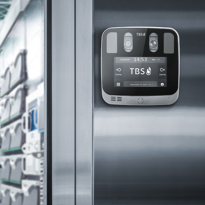 Iris recognition provides maximum security. It is used for access control and time tracking. Since the iris is captured without contact, this method is hygienic. Its security level is comparable to that of hand vein scanners. It is also suitable for very large groups of up to 10,000 people. Multi-factor authentication combining iris recognition with a PIN or RFID badge can be added for extra security.