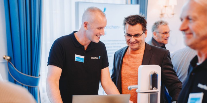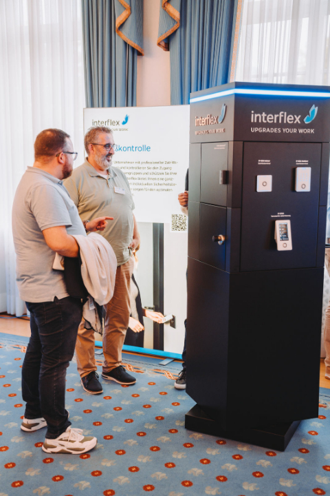Im Anschluss an das Vortragsprogramm bot sich für die Teilnehmerinnen und Teilnehmer an verschiedenen Themeninseln die Möglichkeit, direkt mit den Interflex-Experten und Interflex-Partnern ins Gespräch zu kommen. Präsentiert wurden unter anderem – neben dem Interflex-Hardware-Demotower – die biometrischen Lösungen von TBS, die Kfz-Kennzeichenerkennung von viGuard sowie die Weitbereichsleser und Depotsysteme von Deister electronics. Diese Stationen boten viel Raum für Networking, den Austausch von Erfahrungen und die Diskussion individueller Fragestellungen.